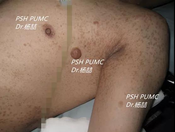 直径超过5mm(儿童)或15mm(成人)、数目不少于6个的咖啡牛奶斑